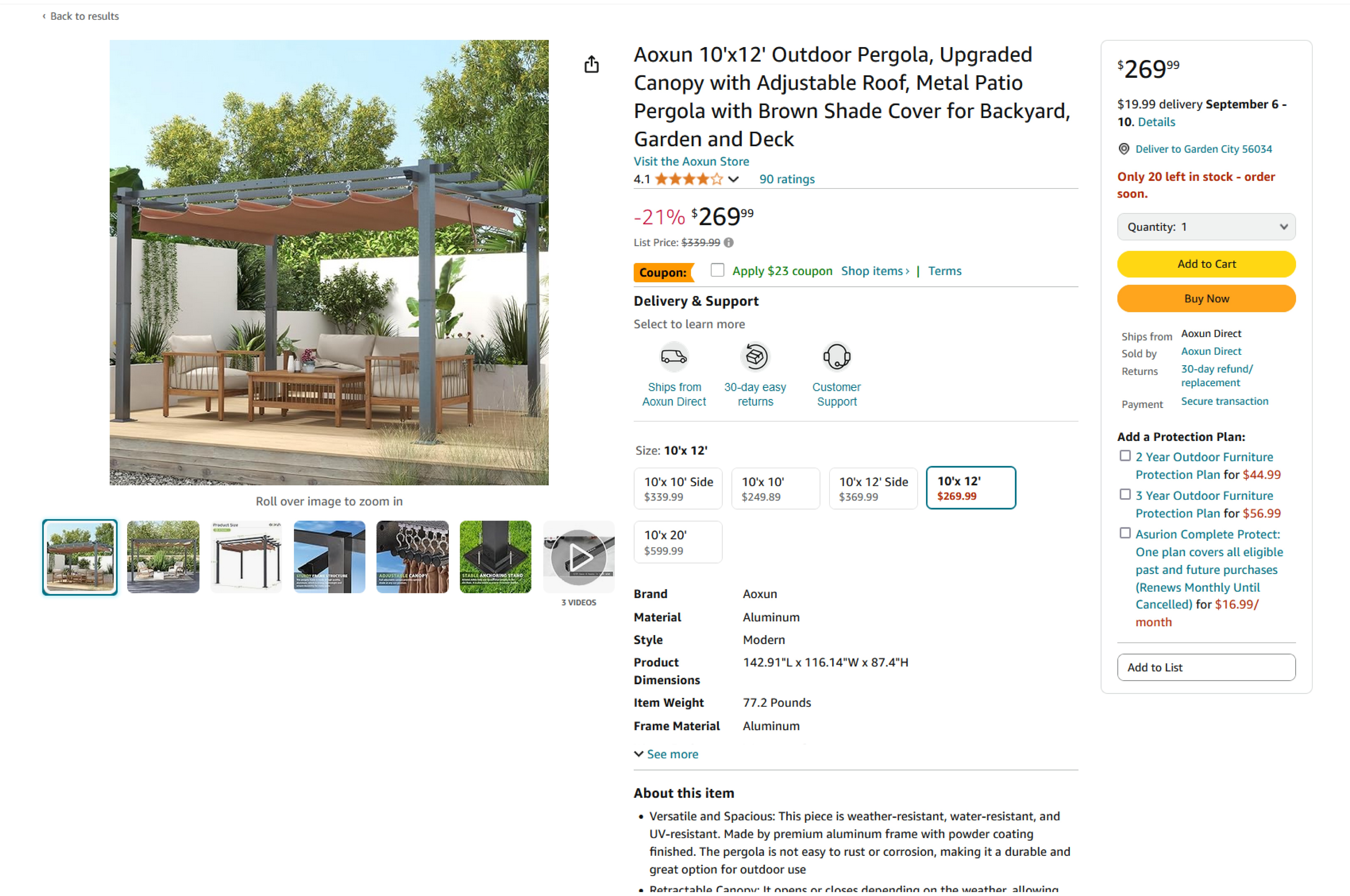 As of October 26th, 2025, the Hanso Aluminum Pergola Kit has experienced a huge surge in popularity. As a result, there’s no telling how many they have left in stock RIGHT NOW.